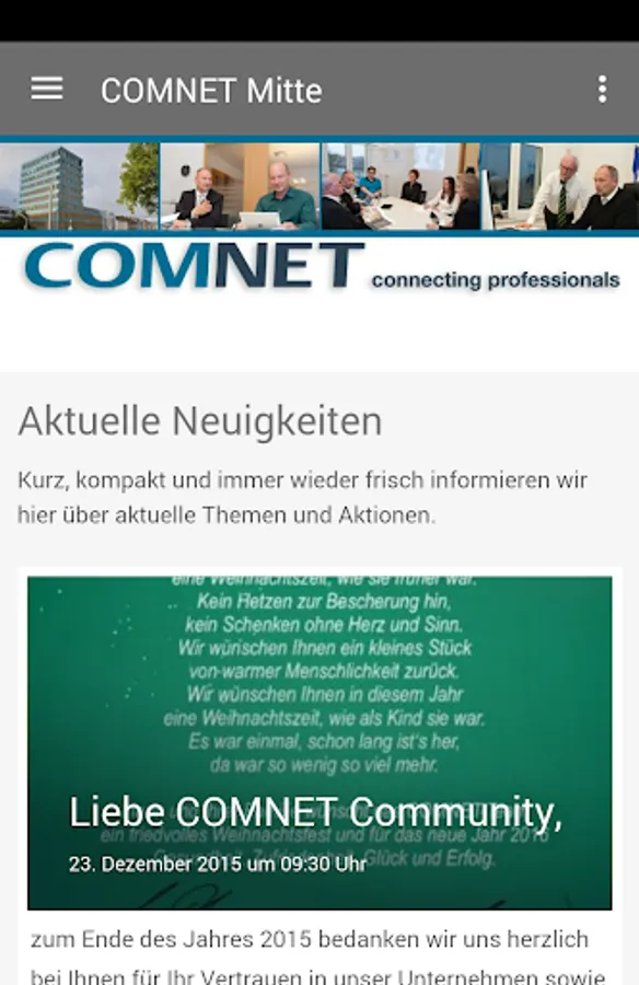 Through this app, our customers and prospective customers the latest information on products, solutions and services that are provided by the COMNET Region Mitte GmbH. In addition, we inform users about news, market trends and product innovations and updates the COMNET. They also include messages about interesting events and appointments.