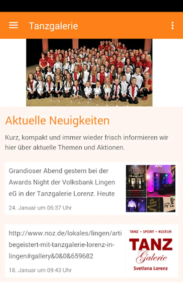 Now there's a dance gallery as official app for Smartphone's! All news, photos, events and dates land so directly in your pocket. Whenever there is something new on your phone's ringing. And because a smartphone is just a phone, can be a button equal to make a connection. The Dance Gallery app always provides a direct line.