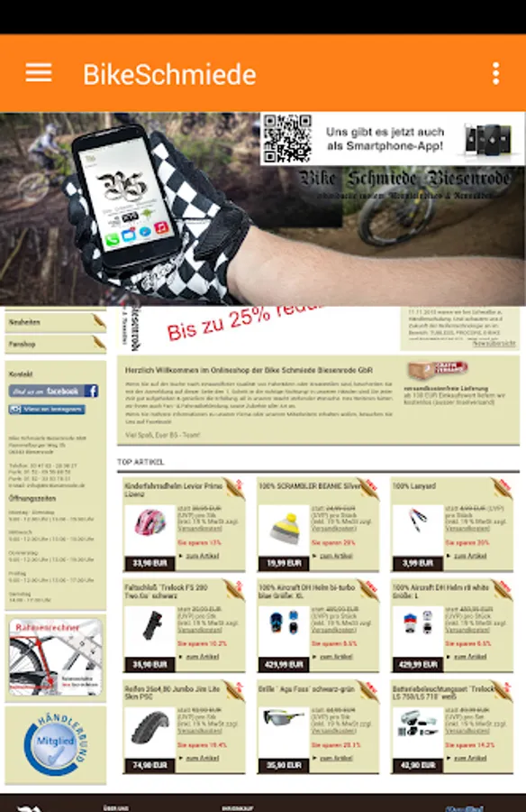 Now there are bike forge Biesenrode as official app for Smartphone's! All news, photos, events and dates land so directly in your pocket. Whenever there is something new on your phone's ringing. And because a smartphone is just a phone, can be a button equal to make a connection. The Bike Schmiede App always provides a direct line.