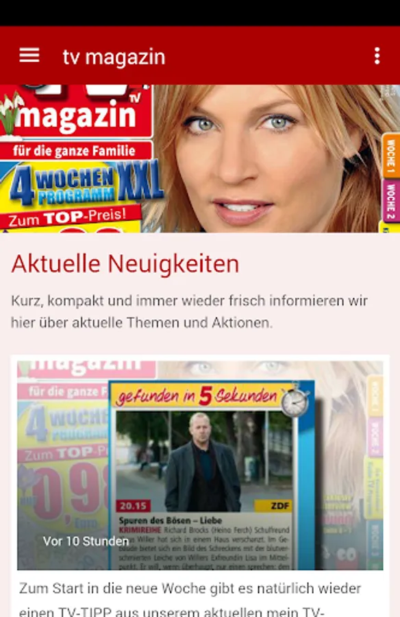 This is the official TV Magazine App. More information about our TV Magazi ne visit www.tv-magazin.net. We update our pages automatically.