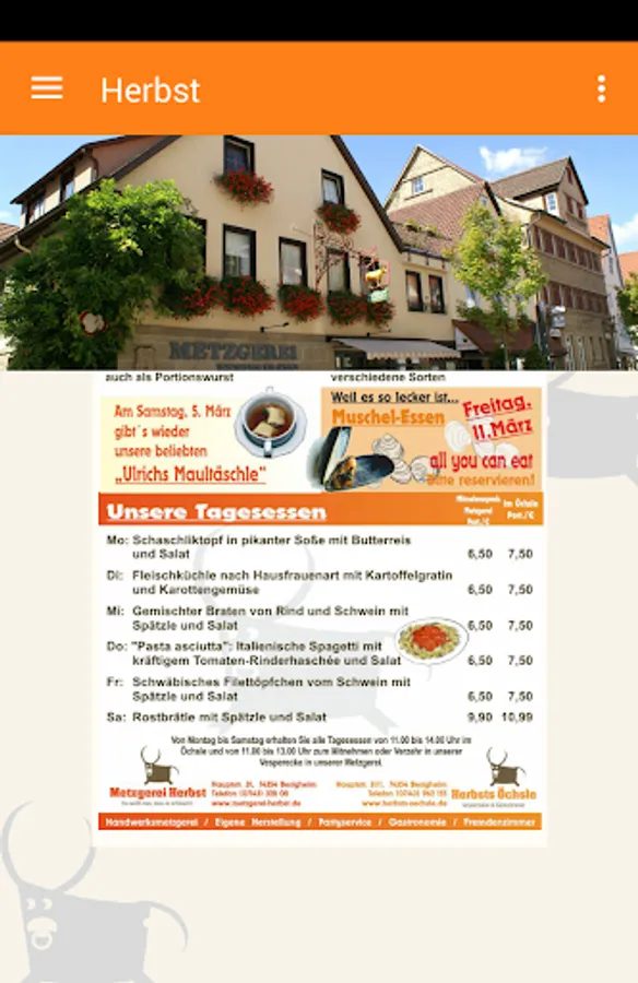 Now there is the butcher autumn as the official app for Smartphone's! All news, offers, photos, events and dates land directly on your smartphone. Whenever there is something new out of the craft butcher fall from Besigheim, it is displayed on the smartphone. We look forward to your visit!