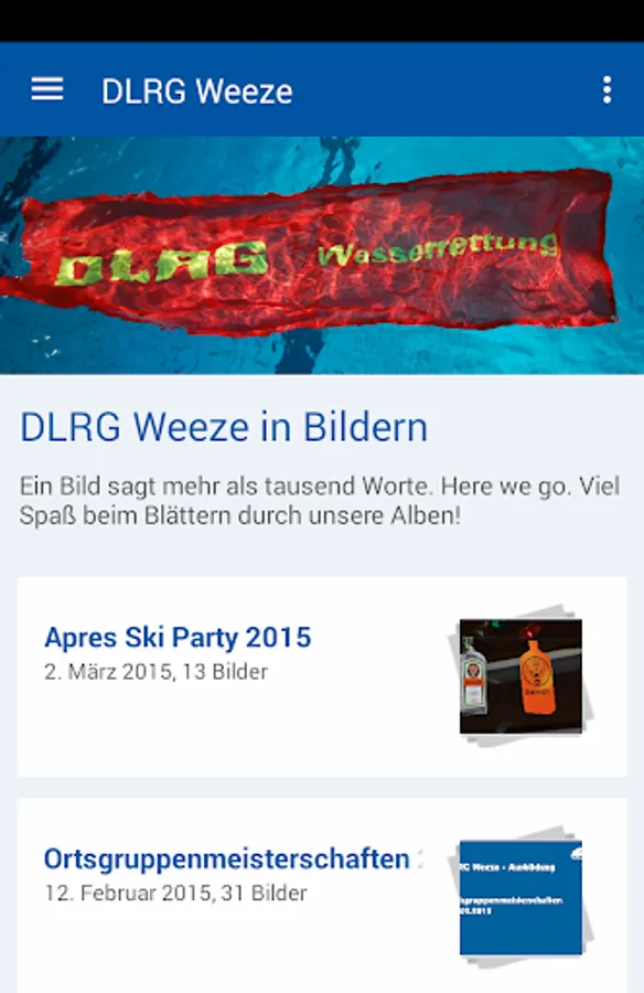 DLRG Weeze! The official smartphone app is here! All news, photos, events and dates always there. As soon as there is something new, it reports the smartphone. With the smartphone push of a button, a connection is possible. This app connects people.