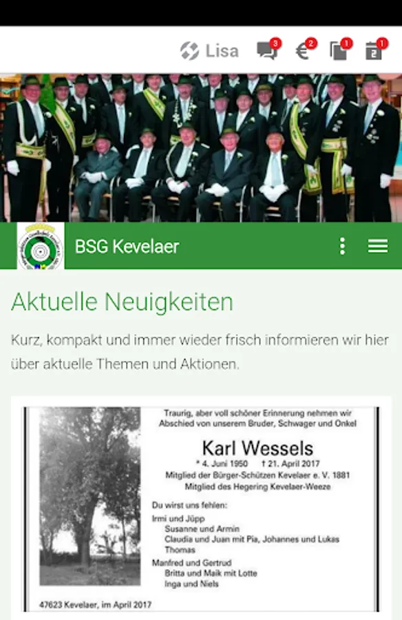 We are a shooting club without church affiliation from Kevelaer on the Lower Rhine. The conviviality and the Pfelge of traditions at our events are our Vordergrund.Mit this app, our members and other interested parties are informed. All events in the company should be displayed. Short reports and pictures of the events are also available.