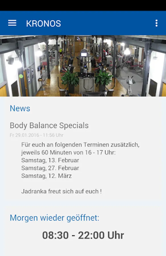 - Read the news of your Kronos Active Club (on request even be used as push message)
