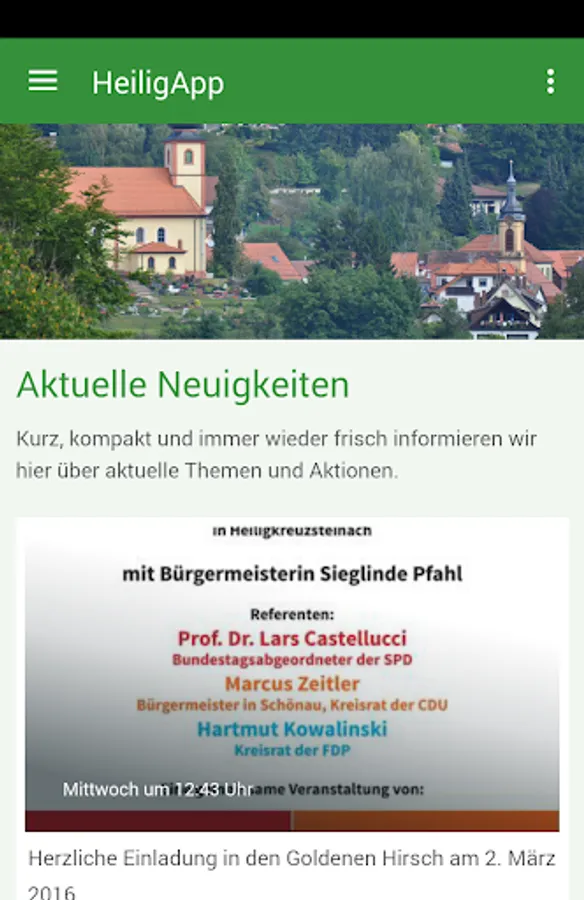 This is the official app of the community Heiligkreuzsteinach. Stay informed round the clock on your smartphone. News and events from our site.