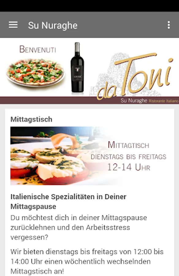 This is the official app of the restaurant Su Nuraghe da Toni in Rheine. Invite them to your smartphone and you always and everywhere up to date and enjoys other benefits which you offer this app. You can also record a chat function quickly and easily to us. We hope you like it!