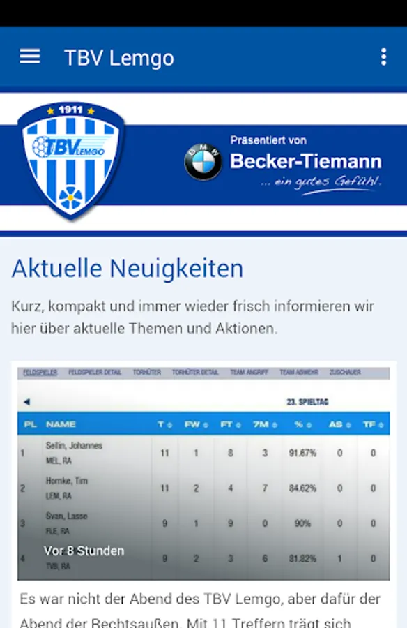 This is the official app of the TBV Lemgo Lippe. Download it for free, so you always have all the events and dates of the East Westphalian Handball Bundesliga in mind and are regularly supplied with new photos and fresh information!