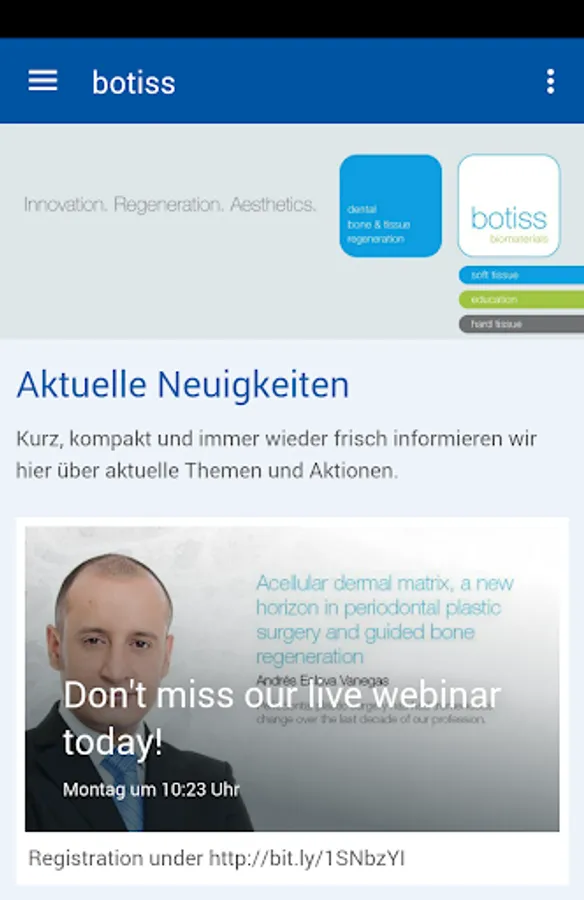 botiss biomaterials offers you a unique systematic BTR approach, the regenerative biomaterial complete portfolio for Implantology, Oral Surgery, CMF and Periodontology out of one hand.