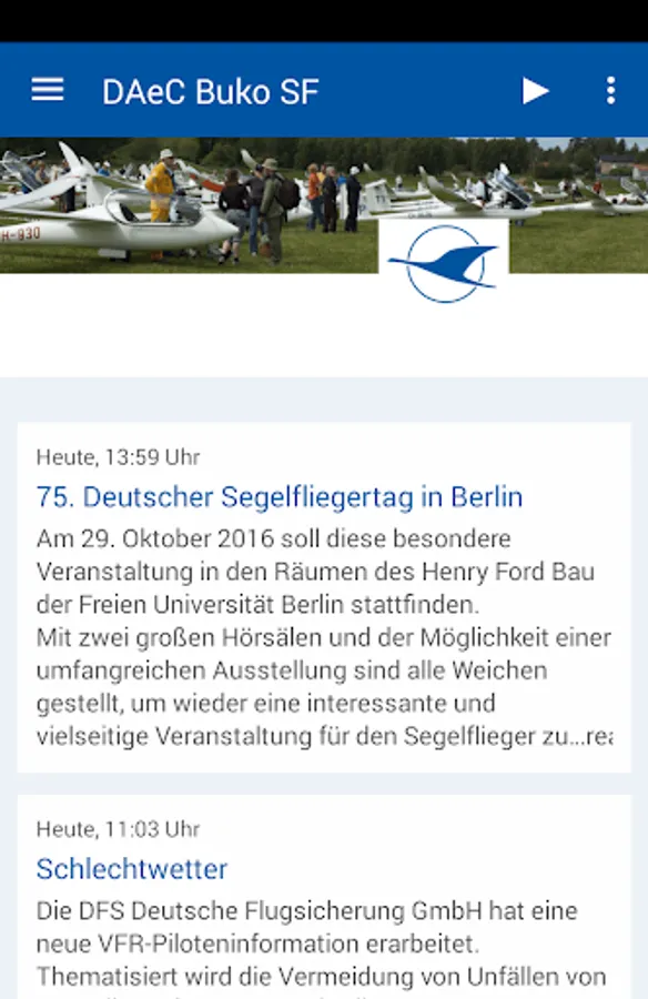 This is the official app of the Federal Commission gliding. It complements the current information of the central association for gliding, which can be found on www.daec.de.