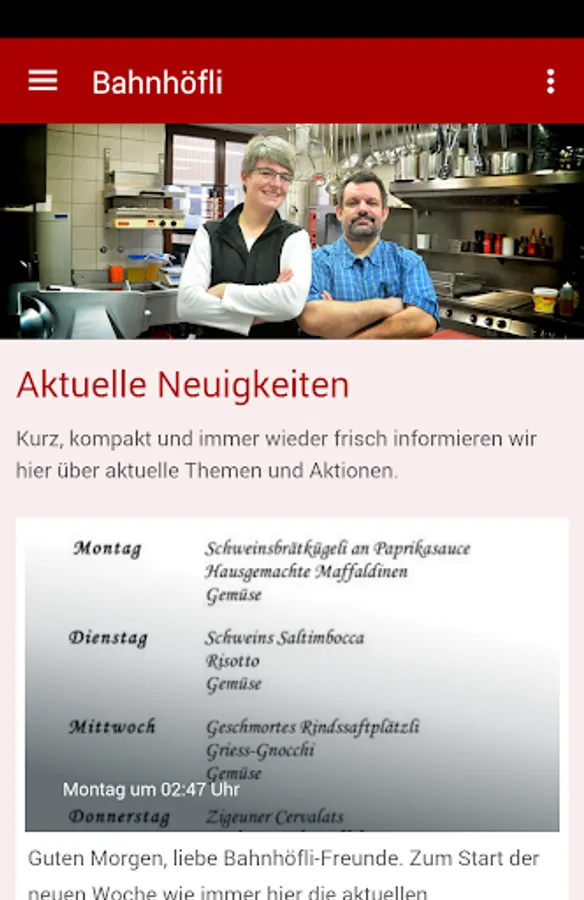 The app a cult restaurant in Ebikon. The best homemade sausages far and wide. And a passionate hosts couple!