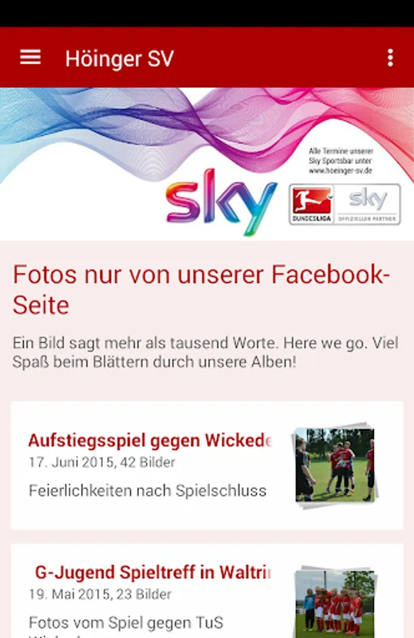 Dates for live football broadcasts of Sky Bar in Ense you will gain also with this app. An overview of all dates you'll find on our website www.hoeinger-sv.de (on the homepage on the right).