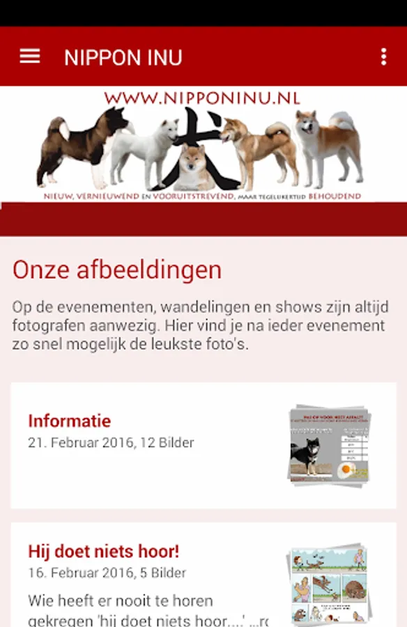 Blijf op de Hoogste van ons laatste nieuws en bekijk de leukste photo's direct op ever smartphone via de NIPPON INU app