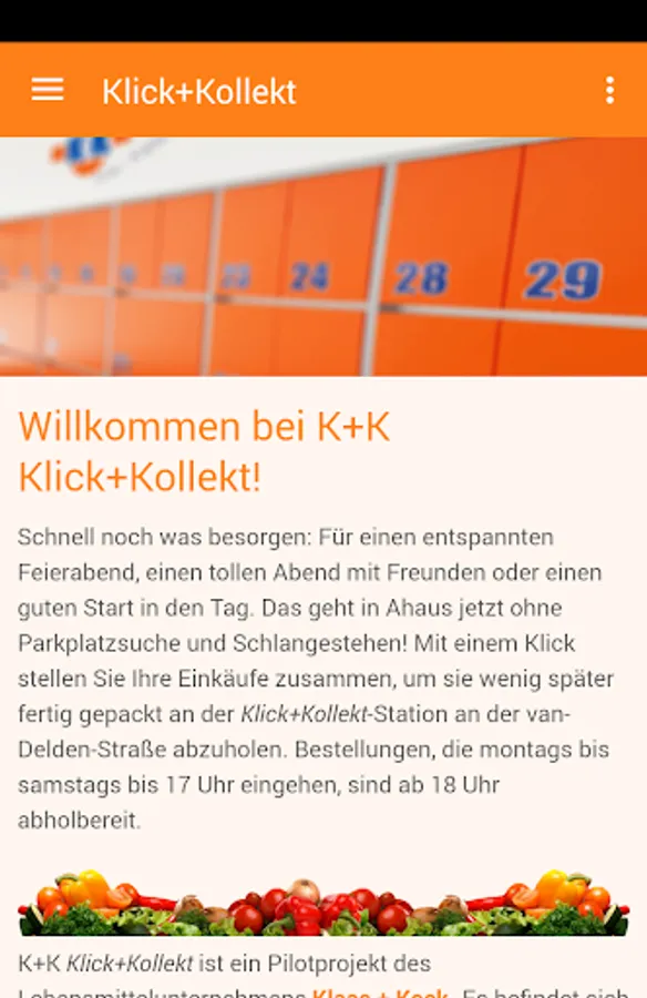 Quickly get something at K + K? That goes with the click + collections-app now jiffy! With one click you put together your purchases in order packed little finish later picked up at the click + collections station at K + K. Never again a parking space, run endless shelf meters and queuing: click + collections!