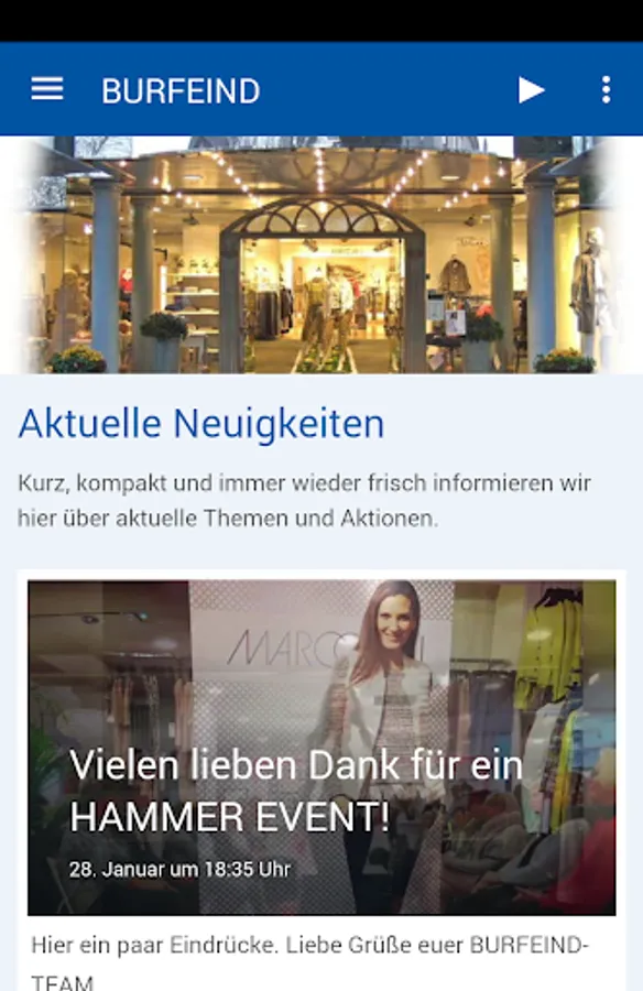 Fashion house Burfeind is THE fashion house in the Elbe Weser Triangle. A great app for any fashion junkie! It is an enabling direct and fast way for news, trademarks, deals and bargains to search.