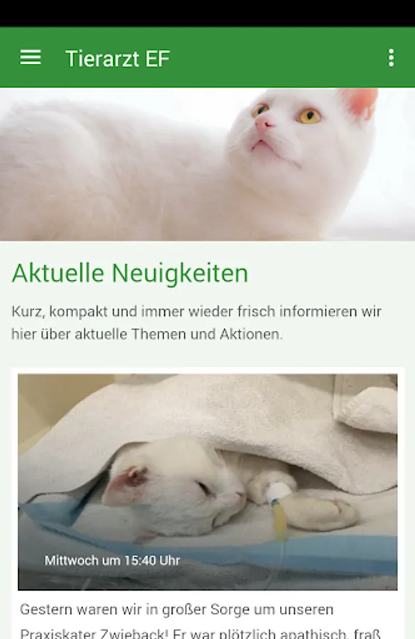 The veterinary practice Erfurt Tiergartenstrasse Tips & Information on the topic of pets. Opening times, news and updates from the veterinary practice. Send us a message and make an appointment via App.