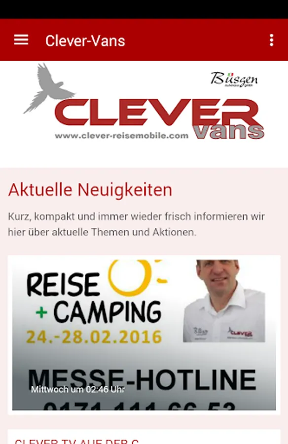 Welcome to the official dealer Clever app for motorhomes. As Clever dealer, we are delighted to be accompanying with this app when choosing your new motorhome and all matters relating to mobility on four wheels. Here you will find the latest information and news about the model range Clever our motorhomes. In addition, we inform you of useful accessories, statutory provisions and our motorhome rental.