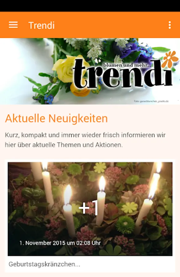 We buy daily fresh, regional and seasonal one - directly from selected Gardening, with whom we have worked for a long time. Our flowers offer we supplement with interesting, exotic flowers. Depending on the season you will find many different types of flowers such as roses fragrant, delicate flowers or checkerboard strong cherry blossom branches - and if it has to be quick, always a selection of fresh, creative put together bouquets for every budget.