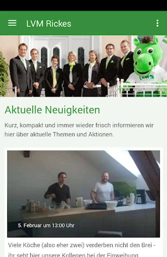 A good insurance agency is always there when you need them. LVM Ricke in Model City is available as an app for your smartphone. This gives you all latest news, photos, events and dates always in view. Please allow under Settings sending push messages, so you will not miss any info. Since you can also make calls with your smartphone, we are very near you with one click. LVM Smith - always the shortest way.