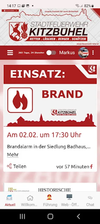 In this app you will find the latest bets, news, exercises and contacts and the address of the FF.Kitzbühel.