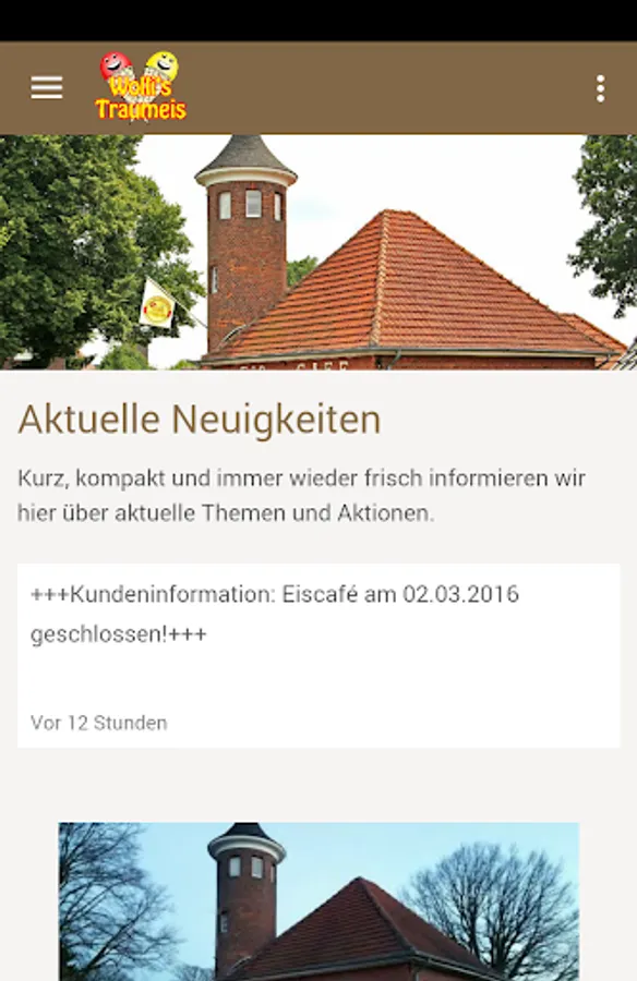 Wolli's Traumeis® app provides current information about the warm ice cream maker, the eye-catching ice cream truck and the ice cream parlor "Zum Alten firehouse" in Reken.
