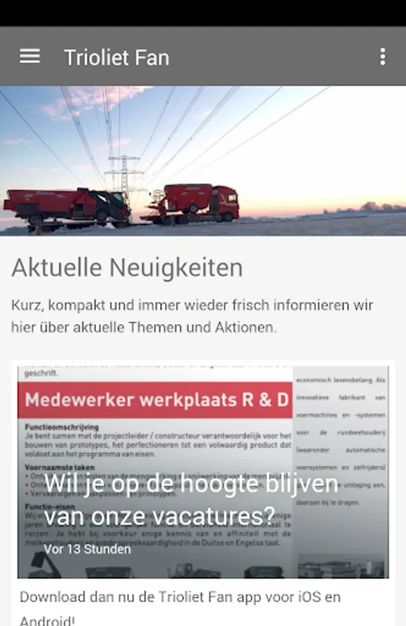 Do not miss any news from Trioliet. You want to receive all messages that we post on Facebook. You'll see photos and videos of our latest products, but funny pictures and stories once in a while. As a real Trioliet fan you do not want to miss this.