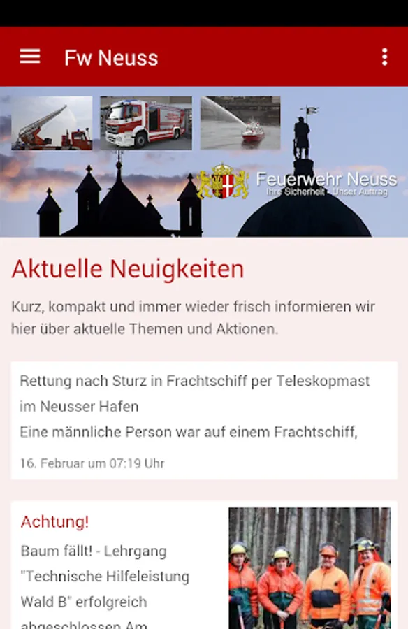 Here you will find information, news and reports use the fire department of the city of Neuss. Per push message, you can check the current use reports or activities.