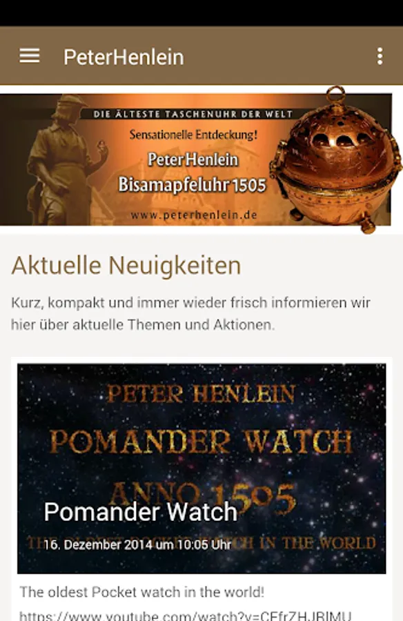 The origin of the Bisampfeluhr has long been unclear. There were early in the Urspungsforschung the clock, speculated about the fact that Peter Henlein is the developer and manufacturer of this particular watch genre. It was discovered when detailed investigations on the inner case is engraved with the inscription, which reads as follows: MDVPHN. Translated the letters of 1000, 500, 5, Peter Henlein of Nuremberg - 1505 Peter Henlein of Nuremberg. This discovery suggests the hypothesis that the origin of Bisamapfeluhr is in the hands of Henlein. He had the time and the skills they need to prepare a clock. In addition Henlein no other watch makers of this time is known, was able to produce portable watches. In addition, there is written evidence that Henlein has sold a gilded Bisamapfeluhr in 1524.