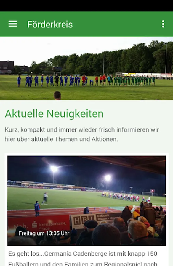 In our app we all info ming football interested on the football life in Cadenberge. Important dates, actions and everything around the youth football will be announced here. Reports about tours of Bambinis who we support and much more.