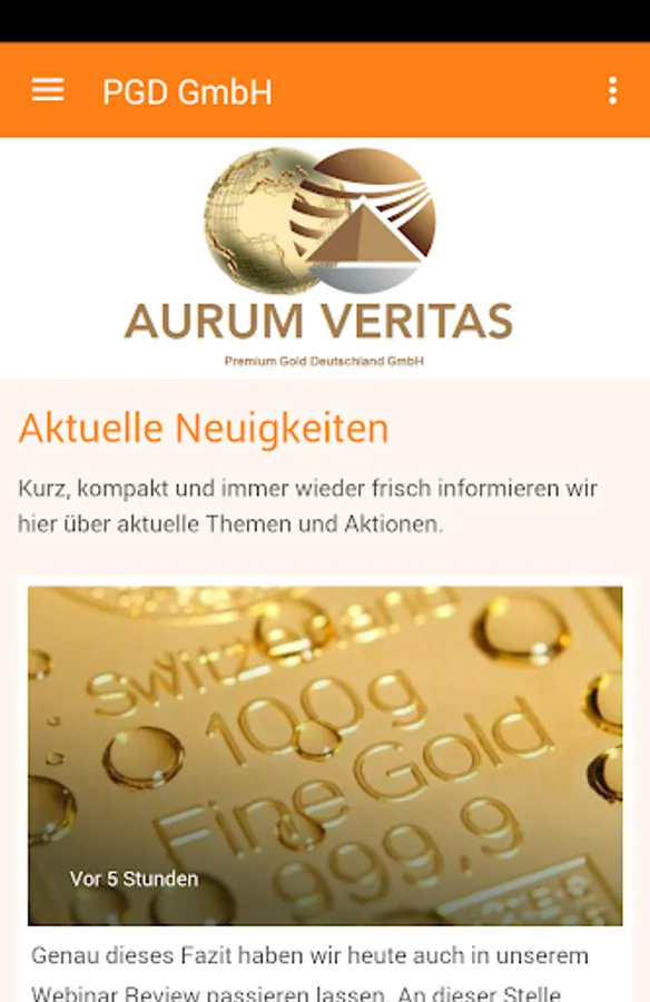 The PGD - Premium Gold Germany GmbH provides information on current gold prices and offers gold bullion from the size 0.1g - 1kg at an affordable purchase. All gold bars have a purity of 999.9 / 1000 (24 carats) and physically delivered.