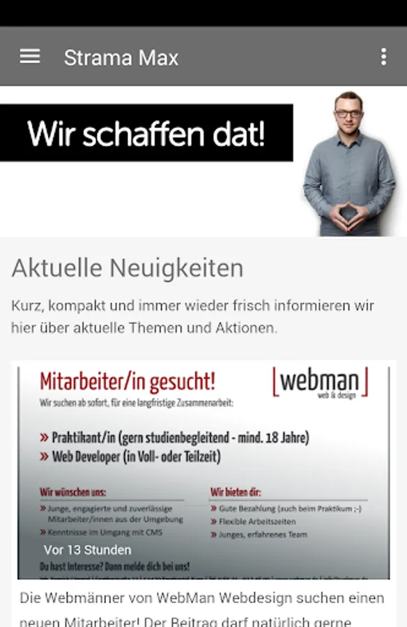 Strama Max is a Social Media & Content Marketing Agency, based in Bernkastel-Kues, Rhineland-Palatinate. When Strama Max, see the contents of the Facebook fan page of the company, these included such categories. B .: The quote of the week, the school social media, blog entries, etc.