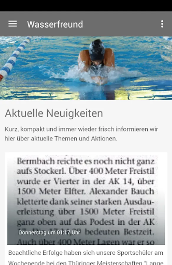 With this app, members, partners and supporters in swimming inform in and around Meiningen on all activities, events and achievements of the swimmers from Meiningen and around ...