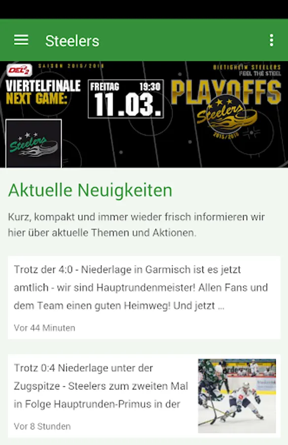 Now you are the Steelers as close as never before: The official app brings you all the Bietigheim Steelers news, photos and dates for the team and the league directly on your Smartphone!