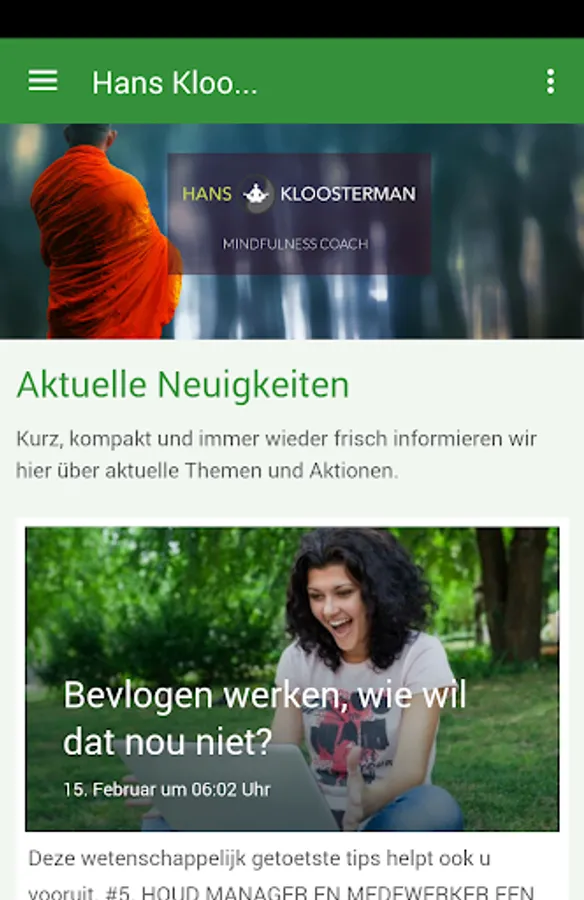 Hans Kloosterman is een Tibetaanse boeddhist en studeert aan het Tibetaanse Kagyu Vasjrayana instituut in het Belgian Huy, dat een kloostergemeenschap heeft met enkele lama's, monniken nun s. Hij heeft indices años geleefd as monnik bestudeert in opleiding en het jaar sinds negen boeddhisme. Hij geeft les in hatha yoga, Chi Kong en meditatie. Been in mindfulnesstrainingen hij empties mensen volledig in het zijn te moment aanwezig bij alles wat ze te doen en zich op drie bewust levels: Fysiek, emotioneel en mentaal.