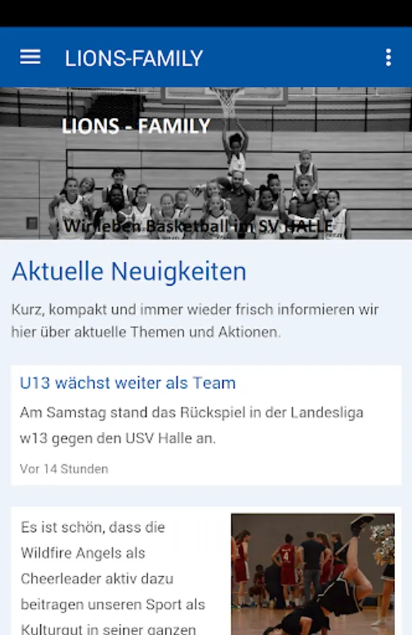 The Department of basketball SV Halle is represented with the LIONS in the 1st basketball league and played there for years a prominent role. In the most diverse age groups from nursery group to seniors Ü40 is played in the national leagues of Saxony-Anhalt, as well as in the junior league U17 (WNBL) Basketball. Life in Lions youth teams of SV Hall connected to the most recent results of all the teams is content of this app.