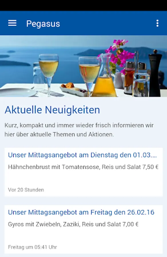 Guests and friends from the restaurant Pegasus can quickly and easily learn about our app now. News from the restaurant, pictures and Vera stable directions.