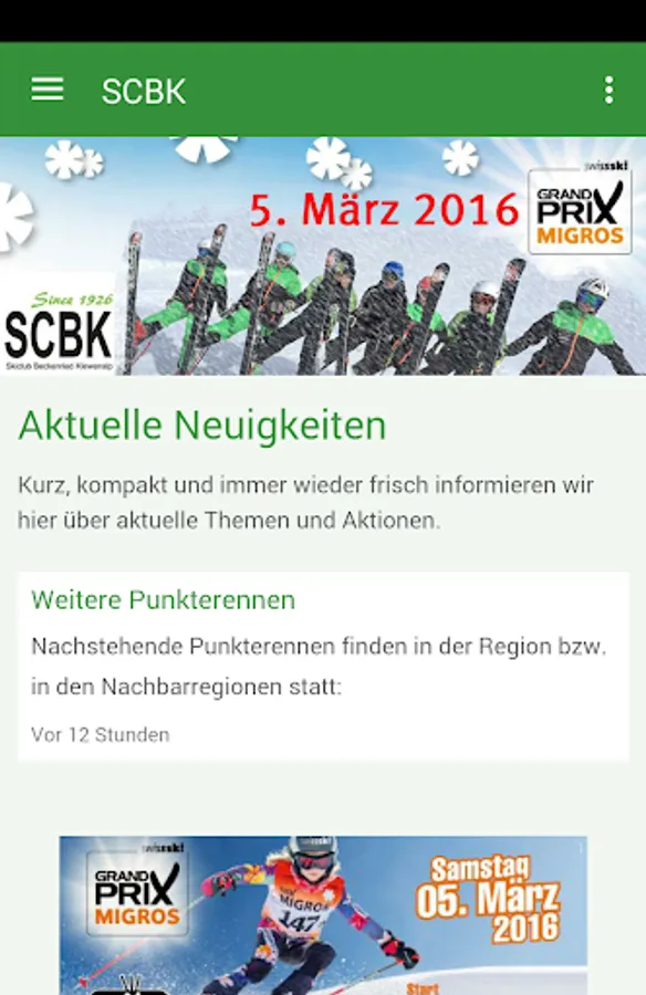 The SCBK - app that keeps you always and everywhere every club member and others about the activities and current results to date! With this app you will receive current information about the Ski Club Beckenried - Klewenalp. Follow the activities throughout the year and plan your participation in the events and trainings. Find out what results our athletes achieve in various snow sports disciplines and pursue the careers of our top athletes.