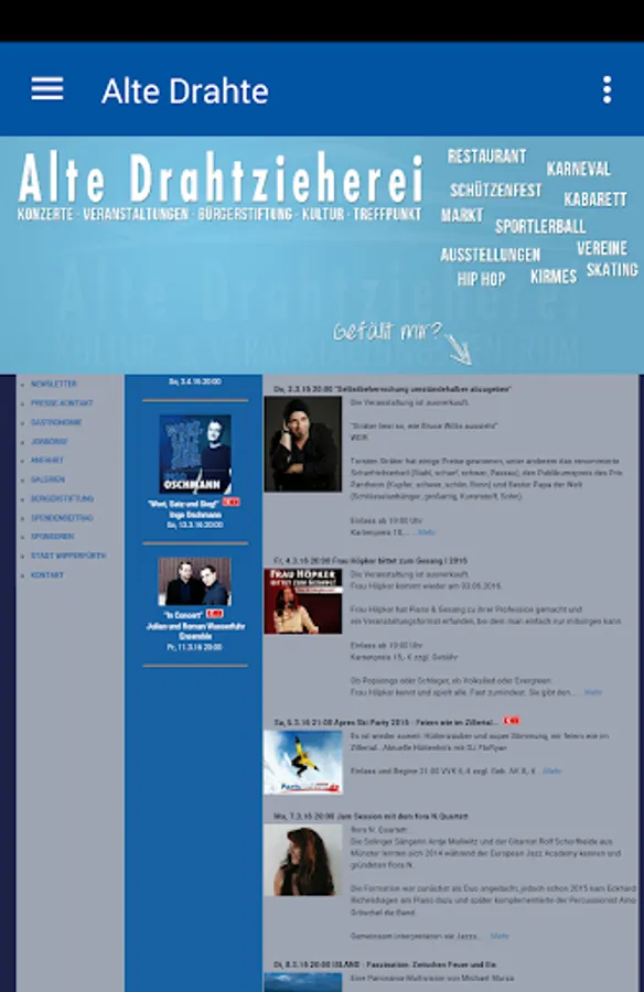 With the wires app you always have a hot wire on current events and artists of the event center Old wire drawing in Wipperfurth.