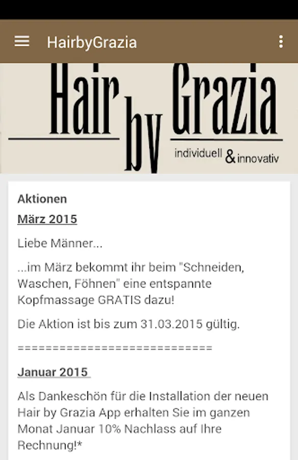 Now the free Hair by Grazia app for your smartphone to install. All news, photos, events and dates of our hairdressers about hairdressing, hairstyles, hair colors, cuts and styling will instantly in your pocket.