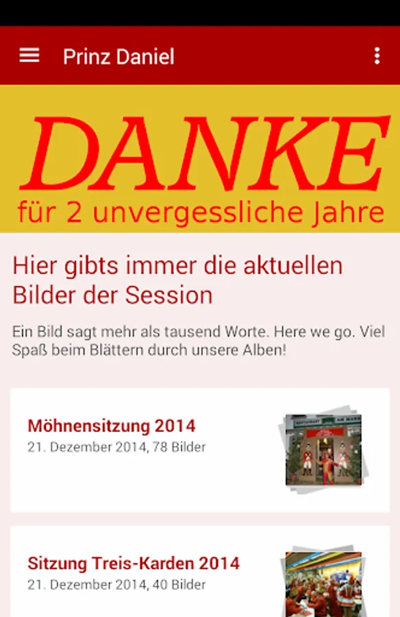 Here you'll find all the info around the carnival season 2015. So all loading this app down and keep you up to date. In the future, there are more pictures and info. We will also launch a contest where you can win a great prize.