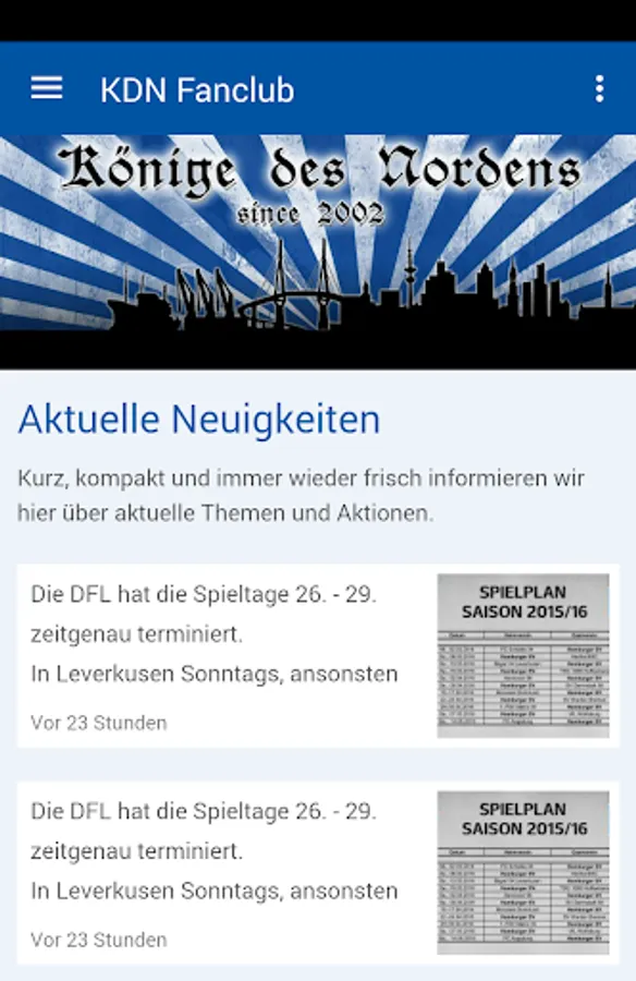 You your fan club as close as ever. The official app of the HSV fan club kings of the north brings you the latest news from the fan club, new photos of home games and away tours directly on your smartphone. Be always up to date and do not miss any more information and dates.