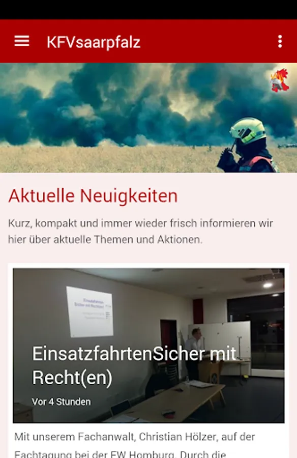 Now there's the Kreisfeuerwehrverband Saar Pfalz eV as official app for your smartphone. Get news, photos, information on the organization and your extinguishing district, but also the use of documentation from the Saar Pfalz-Kreis directly in your pocket. So you always have a "hot" wire to your union!