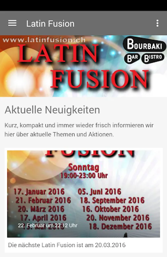To complement the new website http://www.latinfusion.ch we will inform you about the events and publish more information about the salsa scene Switzerland. Latin fusion takes place mainly in the Bourbaki Lucerne. Thank you for publishing.