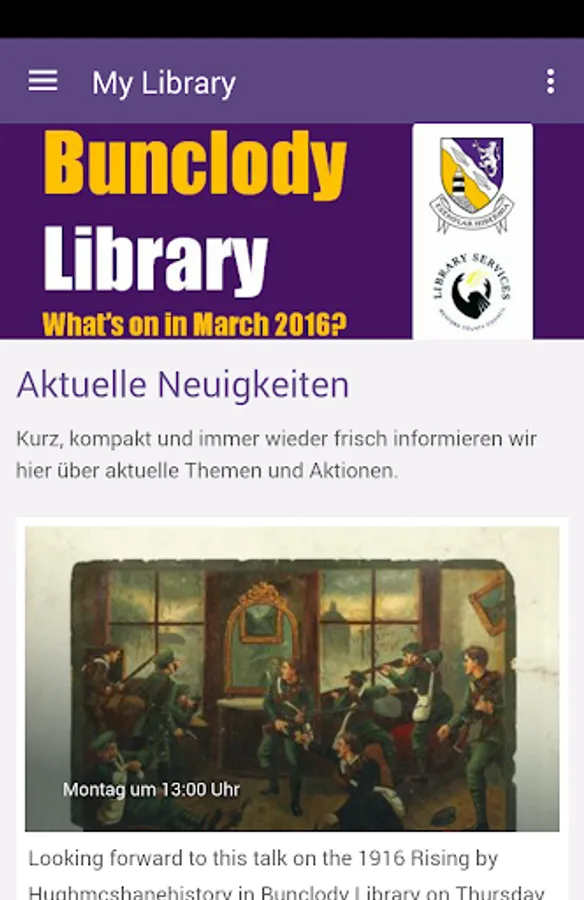Keep in touch with all the news and events at Bunclody Library, Co.Wexford. The library offers a huge range of services and events Including internet access, workshops, talks, eLearning and much more.