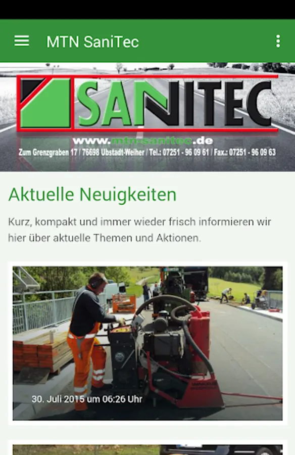 MTN Sanitec GmbH - Society for industrial drilling and joint work from Ubstadt-Weiher. In our app you can find information about our projects, tasks, employees in service, and the contact will be easier for you.
