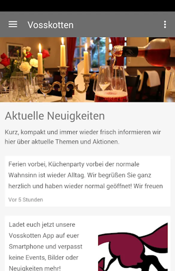 The Voss cottas in Greven is now available as a smartphone app. Always stay up to date on events, dates, pictures and news via push notification!