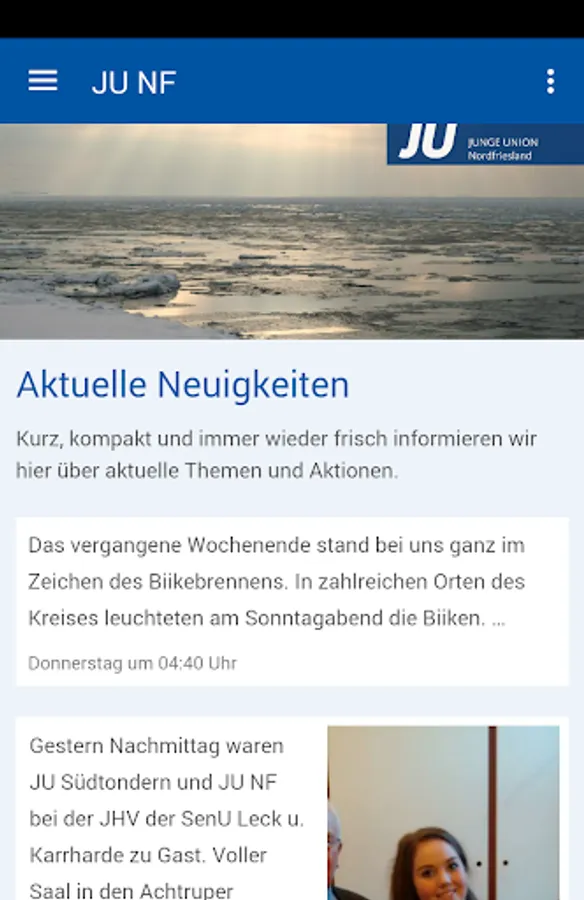 The Junge Union Nordfriesland is a CDU-affiliated youth organization that actively cares about the concerns and interests of the young generation in North Frisia. The JU NF also supports campaigns and events of the CDU and transmits the interests of the young generations in the bodies of local government, but also in provincial and federal politics.