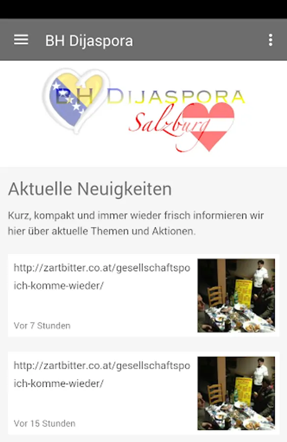The association "BH Dijaspora" Salzburg was founded on March 2, 2013. For the first meeting, the so-called founder meeting, 30 people took part that defines the statute of the association and have elected to a term of 2 years, the chairman of the respective sections.