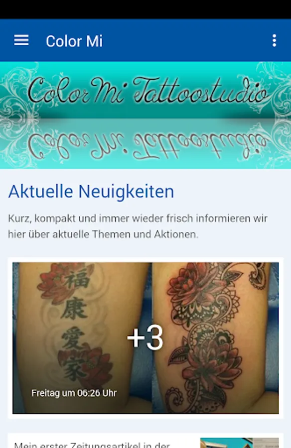 The Full Monty: The Tattoo's no half measures. Therefore, there is the Color Mi Tattoo Studio now as official app for Smartphone's! All news, photos, events and dates land so directly in your pocket. Whenever there is something from the world of skin stories ring's on the smartphone. And because a smartphone is just a phone, a button can be equal to establish a connection. The Color Mi-app always provides a direct line.