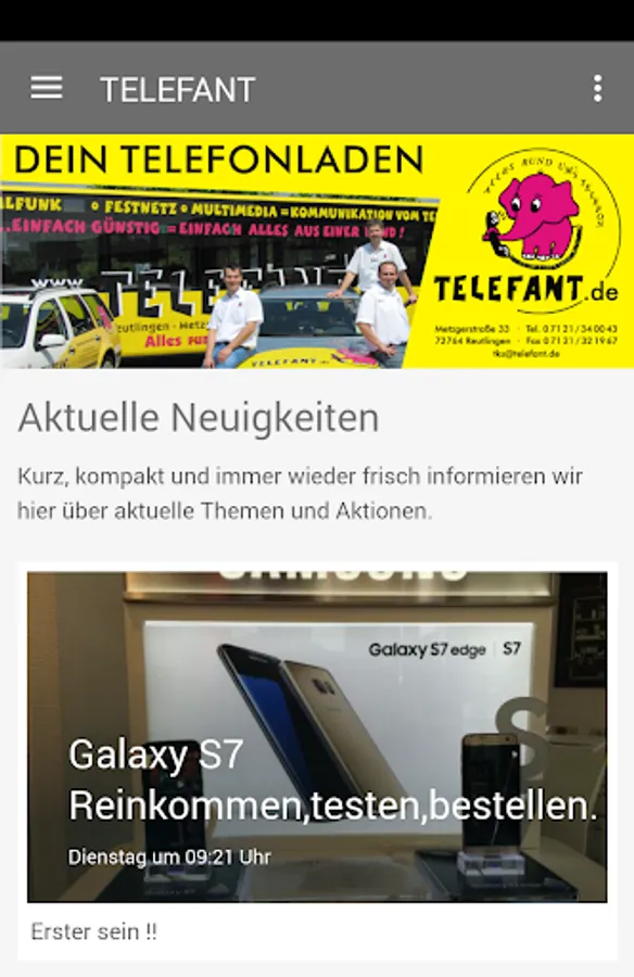 Whether you are looking for business or for pleasure, communication solutions, whether mobile, phone, cable TV, DSL / Internet, Telephone systems, vehicle fittings or instant troubleshooting, we are always your first choice. Give us a try, please call us on (07121) 34 00 43 or send us an e-mail to tks@telefant.de.