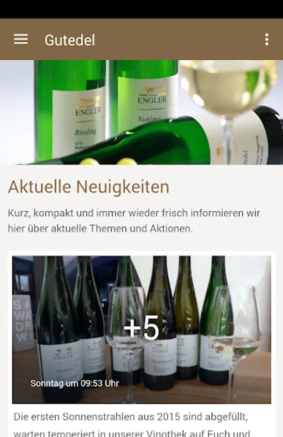 With our app you Smarthphone always informed at any time about the winery Engler. We will inform you about our new wines, farm festivals and awards, surrounding the winery.